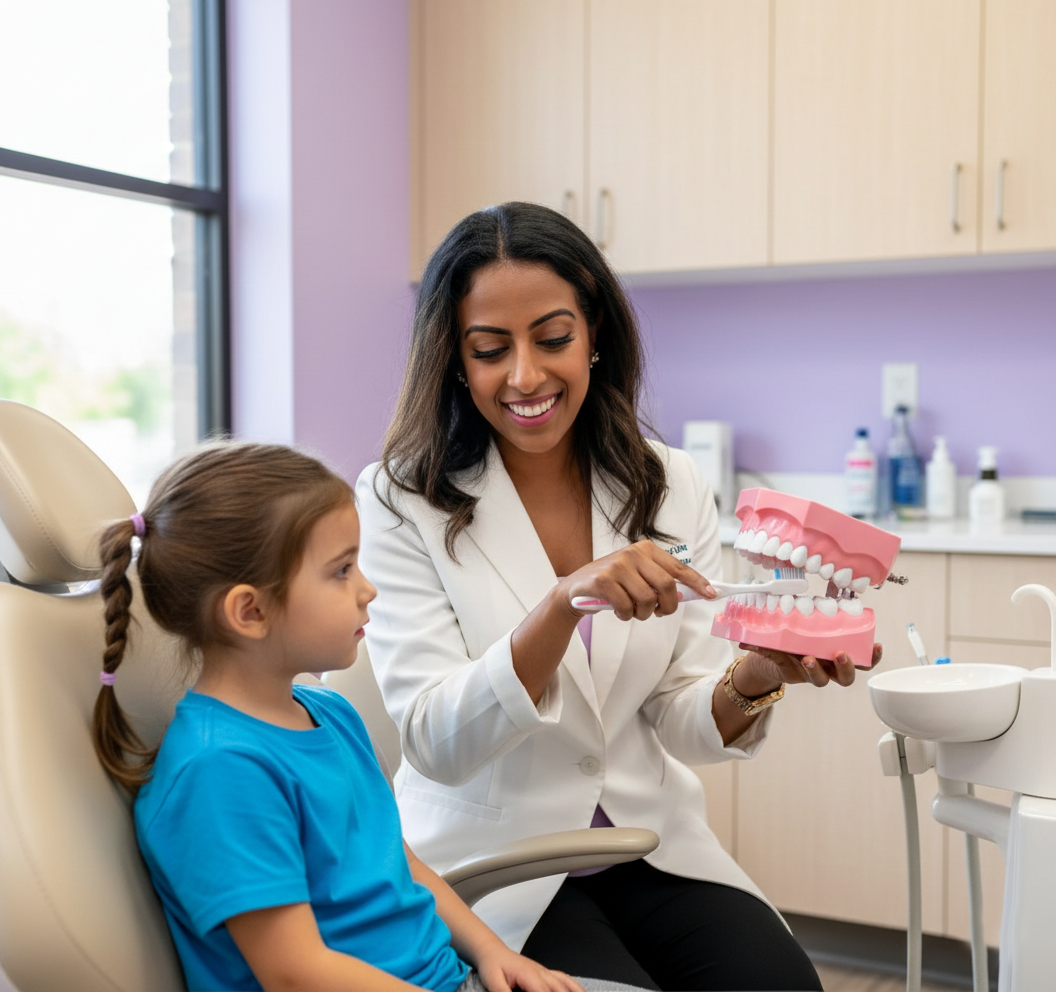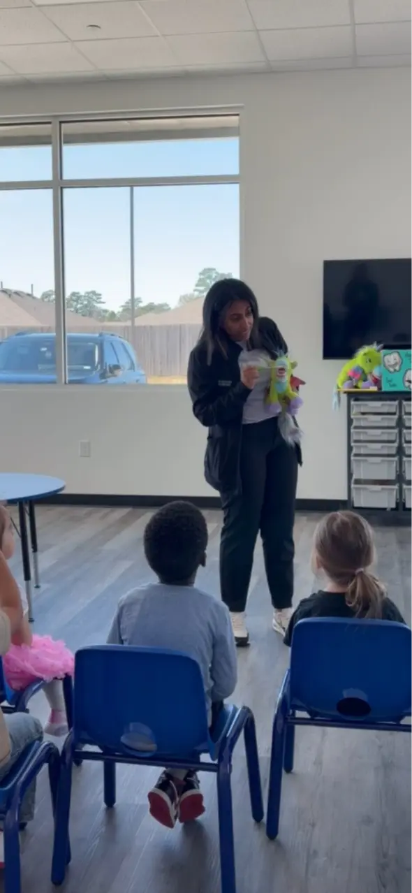 She earned her Doctor of Dental Surgery degree and completed her Pediatric Dental residency at the University of Texas School of Dentistry at Houston. But she didn’t stop there—she also holds two master’s degrees: a Master of Public Health with a Dental Emphasis and a Master of Science in Dentistry, where her research explored how virtual reality can help kids manage pain and anxiety.